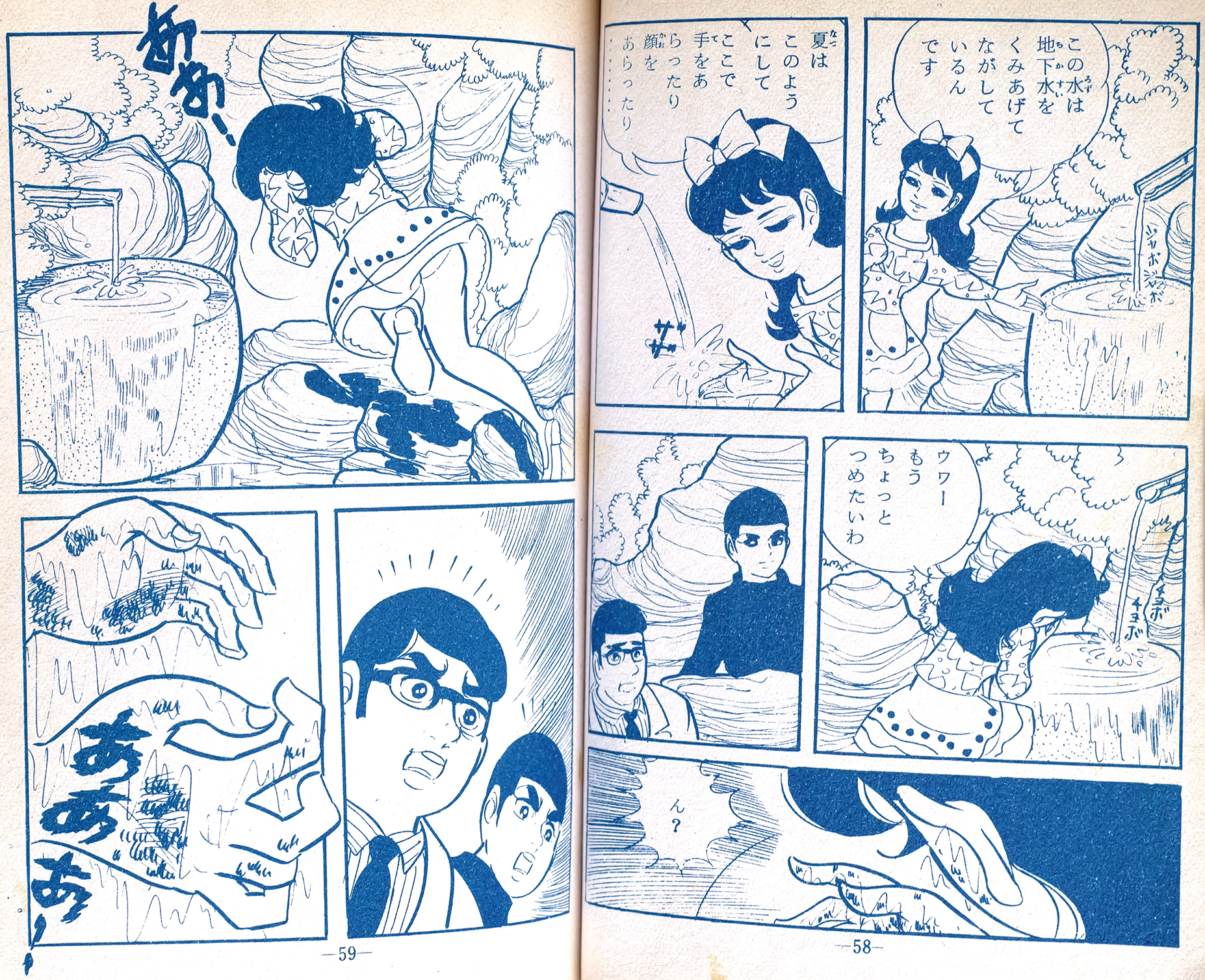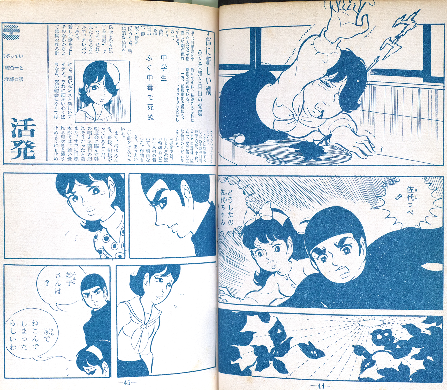 表紙をp1と数え、裏表紙を入れてちょうど貸本定番の128頁となる。せこい水増し的ノンブル付け、定価は230円もするのに。。マンガ作品は、p5〜p121に収められている。p6ナレーションに「一頁の表紙の人、この人は私の友達高崎妙子さんです。」とある。表紙とはトビラのことを指すのだろう。そのトビラには "ー5ー" と振られているのだから、編集は気を配るべきだったろう。校正などちゃんとしていなかったんだろうなァ。。