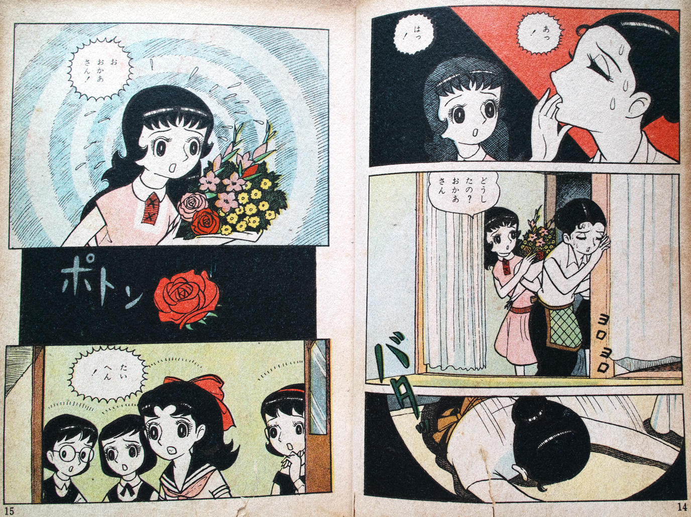 昭和34年(1959)、50年代の終わり、まだB6ハードカバー判の貸本漫画も存在していた時代に、この大ゴマ描写はかなり先鋭的だったのではなかろうか。