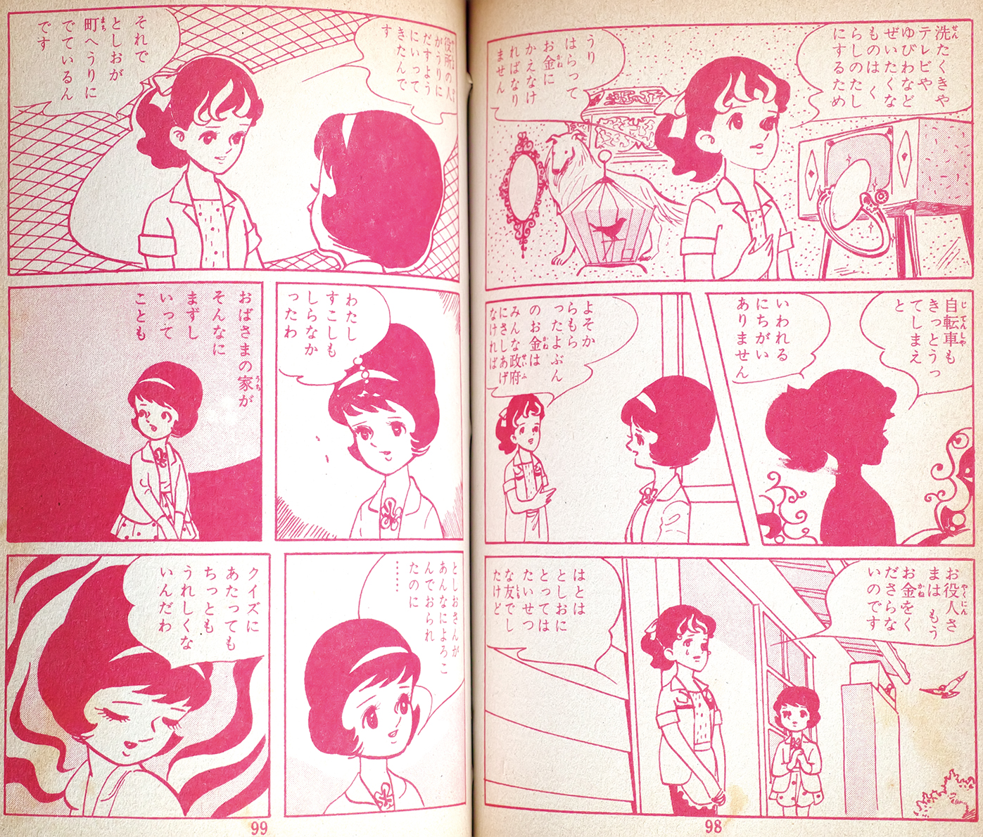 ハトうりの少年・としおと同じクラスに転入したよしえ。かめのせなかのアップリケをつけてもらおうとおばさんの家へいくと、としおがいた。おばさんはとしおの母親だったのだ。クイズにあたり二等の自転車がもらえるとの速達がとしおに届く。だが、おばさんはよろこばなかった。