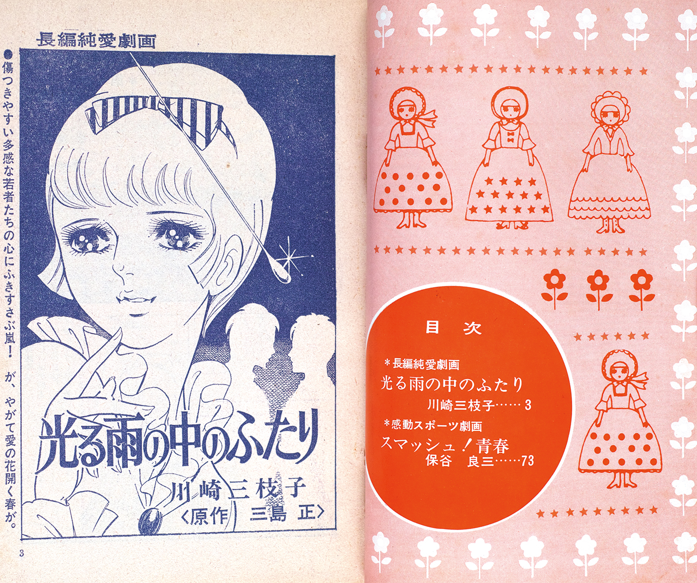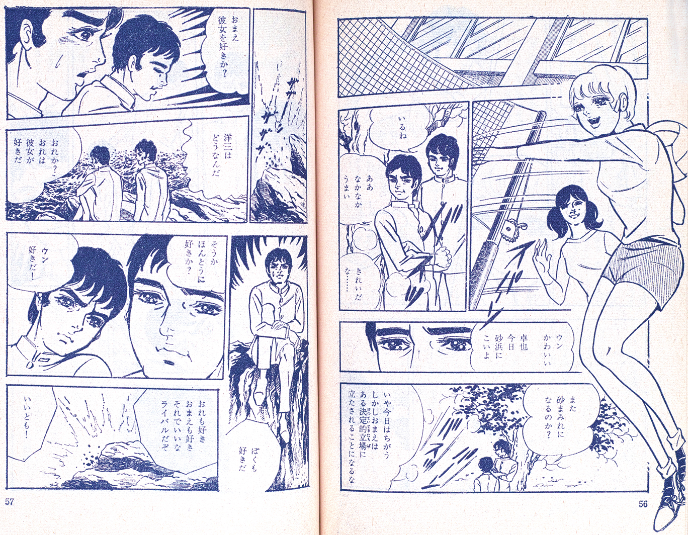 “長編純愛劇画” と銘打たれているように劇画だ。二人の男から好かれる主人公・美緒子は「かわいい」といわれているが、どうにもかわいくないなぁ。。美緒子たちは高校生だが、女学生コースジュニアの対象は女子中学生くらいかな。その女子中学生〜高校生たちにこんな劇画タッチがうけたのかな〜?