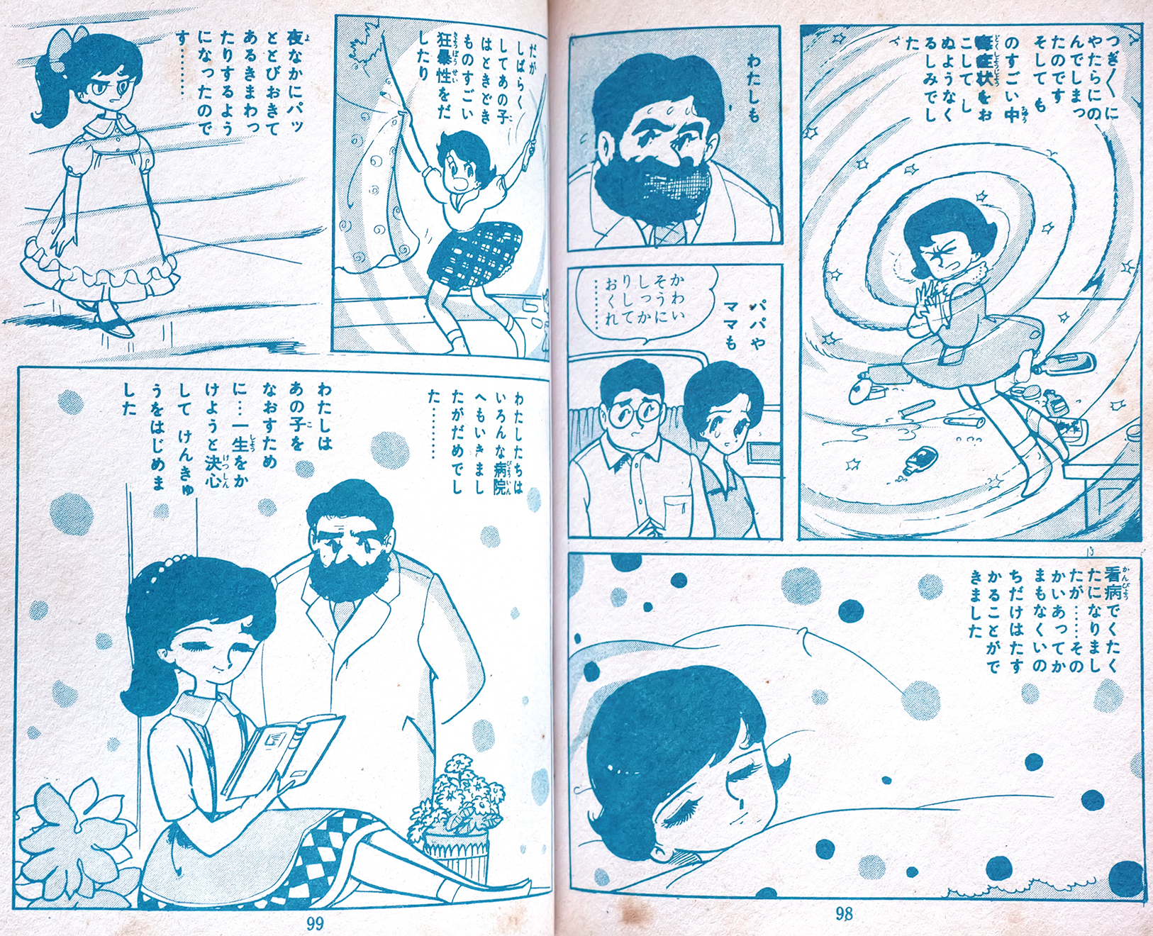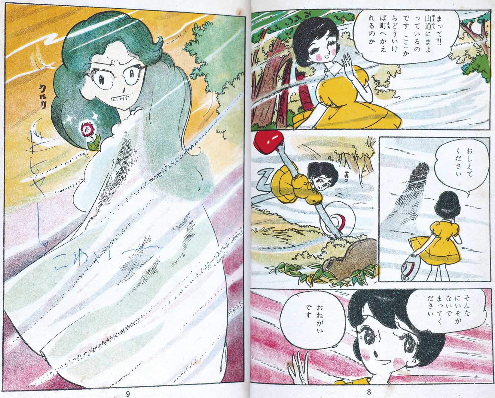 わたなべまさこ先生風の絵、三条こみち先生のようなダイナミックさはなく、やさしくおとなしめ。それがかえって霧のなかの人のこわさを引き立たせている。まさかこの絵の流れでこわさを感じるとは思わなかった。当時の読者も「ドヒャーッ こわい〜」と感想を記されているが、、コラッ落書きすんじゃねーよ!