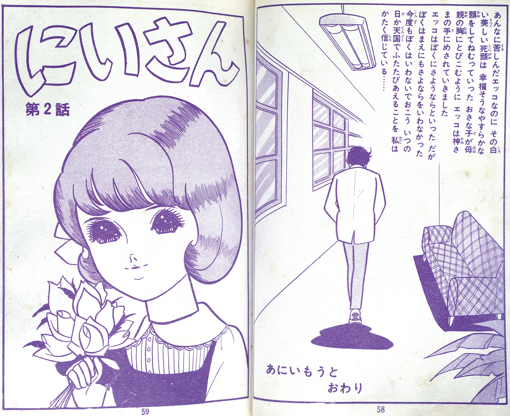 「あにいもうと」は、エッコの兄・英二が実の両親のもとへ。数年後、医者になった英二は苦しんで死んでいくエッコを看取る。