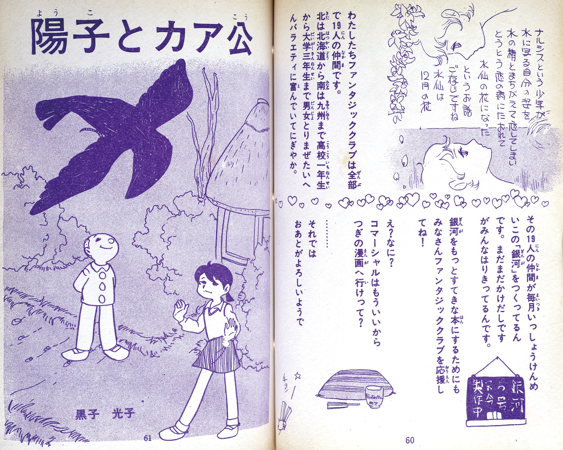 ファンタジッククラブという団体による、同人誌的貸本という感じ。鷹羽あこ先生めあてだったが、普通な生活マンガなのはいいけど鷹羽先生らしいインパクトがいまひとつ。で、ゆかわまや先生の作品をとりあげる。